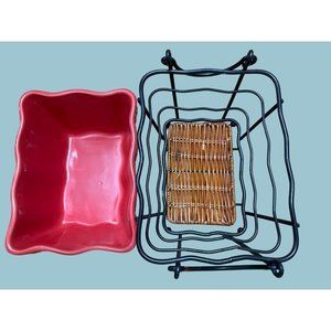 Temp-tations Temptations by Tara 1 Quart Casserole Dish Wire Basket Hot Plate