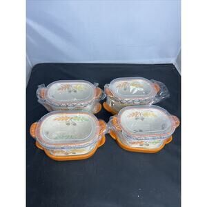 Temptations by Tara Old World Fall Autumn Ramekin Bowls, Lids Tray 12 PC Set