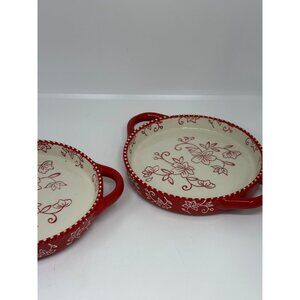 Temp-tations by Tara Red Floral Lace Round Baking Dish Set of 2 Vintage Ramekins
