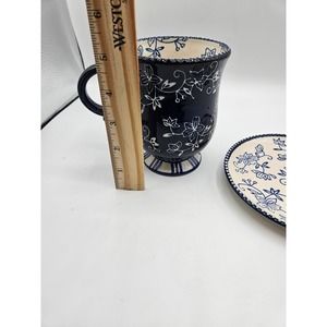 Temptations by tara Floral Lace Footed Mug and Saucer Blue and White