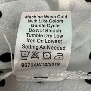 Tempted women's chiffon polka dot top in black & white. V-neck with self tie. Ruffle sleeves. Lightweight. In good used condition. No stains, tears or holes.