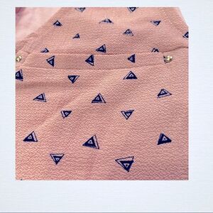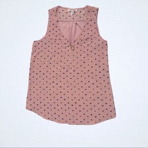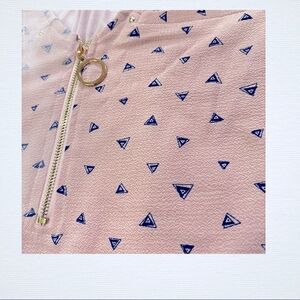 Tempted Hearts Los Angeles Sleeveless Zip-Front BlousePink with Navy Blue Triangle print, Gold Zipper.