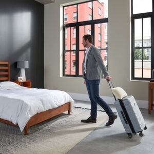 This travel pillow is designed for travelers. It is plush and comfortable. It provides good support. It is small enough for a carry-on bag, perfect for the airplane or long road trips in cars.