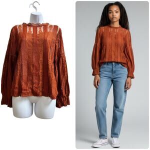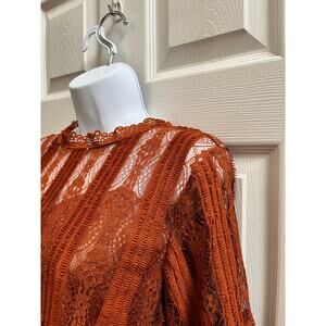 Temt Lantern Sleeves Overlay Lace Lined Romantic Blouse Size Medium