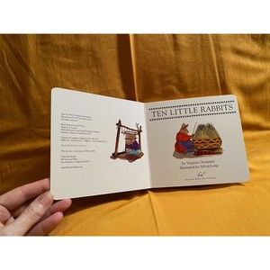 Ten Little Rabbits is a wonderfully illustrated and well written counting-numbers book for children. Rabbits are the animals but the theme is Native American; respectful. Board Book.