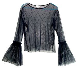 Ten Sixty Sherman Black Mesh Dot Bell Sleeve Top size Medium