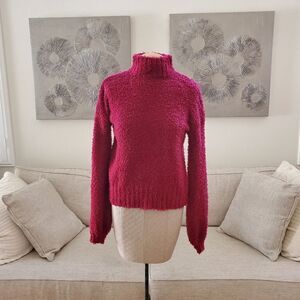 Ten Sixty Sherman | Chenille Eyelash Knit Mock Neck Sweater - size XL in Cranberry Red.
