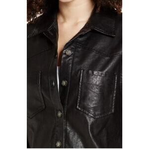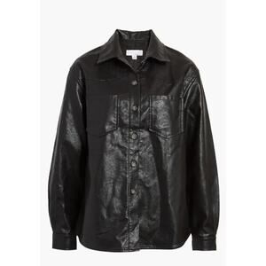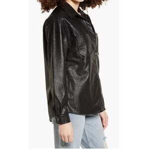 Ten Sixty Sherman Women's Faux Leather Shirt Jacket in Black Large MSRP $69