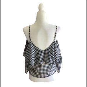 Ten Sixty Sherman Cold Shoulder Blouse in a Black & White Checkered Print