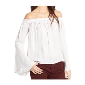 Ten Sixty Sherman Off-the-Shoulder Blouse Cloud Gray Bell Long Sleeve Pull-Over