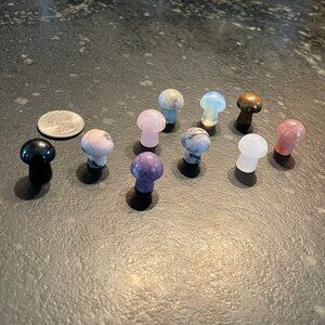 Ten Small Cute Carved Gemstone Mushrooms (NWOT)