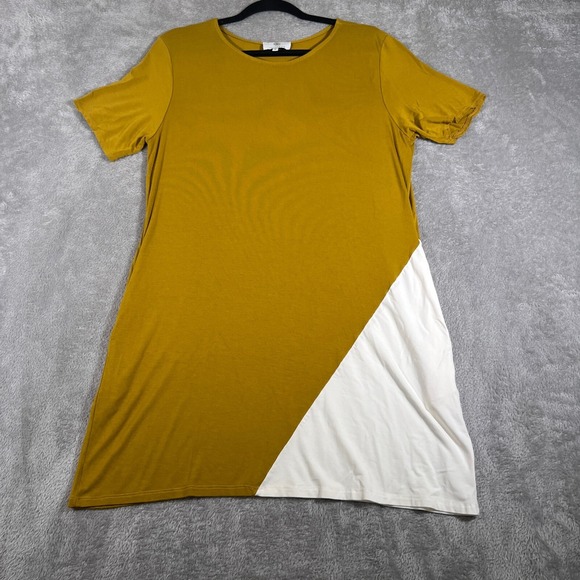 Ten Tomorrow T-Shirt Dress Womens Mustard White Medium Colorblock Short Sleeve
