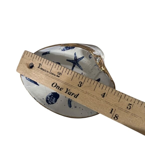 This elegant decorative shell dish features a captivating ocean marine life design, highlighted with a luxurious gold edge. Ideal for adding a touch of nautical charm to any space.