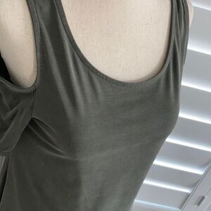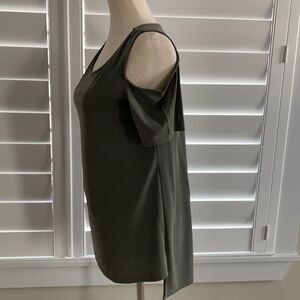 Ten Sixty Sherman sz M cold shoulder tunic length high low top blouse green