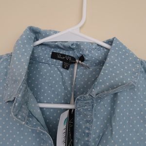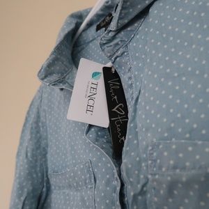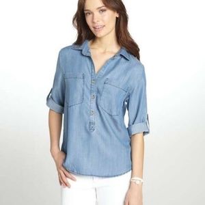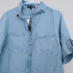 Tencel Blue Chambray 3/4 Sleeve Polka Blouse NWT