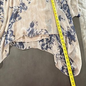 Tendenze 100% Silk Beige Blue Floral Kimono Asymmetrical Flowy Blouse Italy