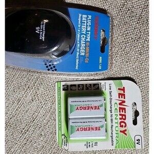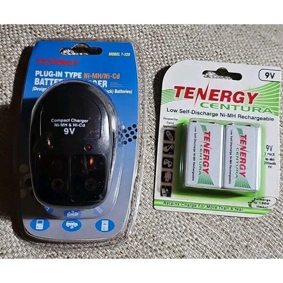 Tenergy Plug-In Type Ni-MH/Ni-Cd Battery Charger (9V Block) T-228 & 2 Batteries