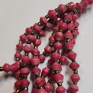 This stunning necklace features a beautiful combination of pink paper beads and seed beads, perfect for adding a touch of elegance to any outfit. Ideal for both casual and formal occasions.