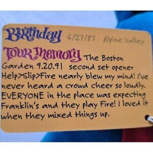 Tags attached, New condition. It's blue in color and has a red colored neck band. Commemorates a 06/27/87 show at Alpine Valley.