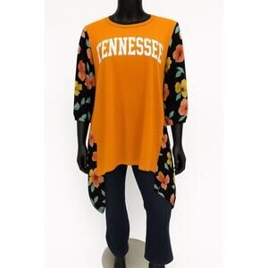 Tennessee Orange Tee Sheer Floral Kimono Tassel Sleeves Top Upcycled Custom