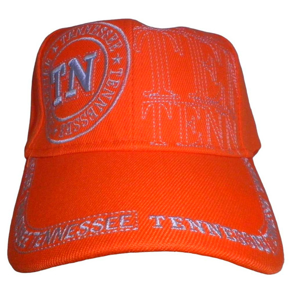 Tennessee TN Ball Cap, Solid Orange, White Embroidery, Strapback, Trucker Hat