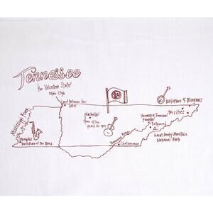 Some of the beloved landmarks of the state of Tennessee, each drawn, labeled + screen printed onto washable lint-free floursack cotton kitchen towels.