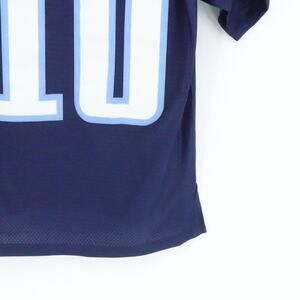 Features: Embroidered NFL Equipment patch at collar; Titans sleeve crest patches; stitched appliqué name and numbers; mesh paneling; side vents; "Engineered by Reebok to the exact specifications of the National Football League" jock tag; Players Inc branding