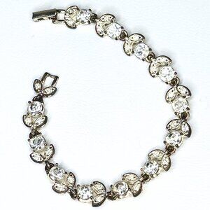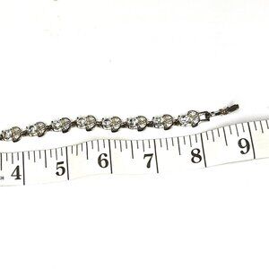 Tennis Bracelet Flower White Crystal Rhinestone Silver Tone 8"