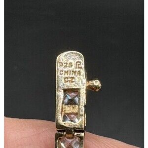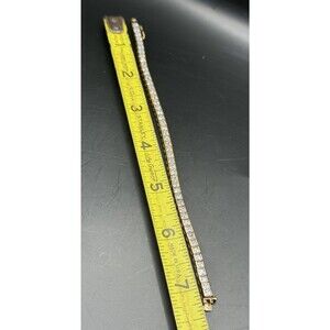 Tennis Bracelet Gold Tone 925 Box Chain Cubic Zirconia Signed R 7 1/2"
