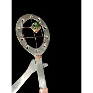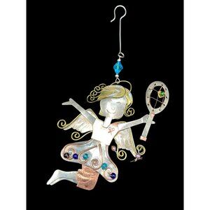 Tennis Girl Ornament Mixed Metals Legs Move Gemstones Silver Copper Brass 7 x 3.