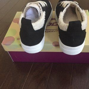 Tennis Shoes Sneakers Black with Tan Trim Size 8 Women's Shoe Lace Up New