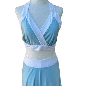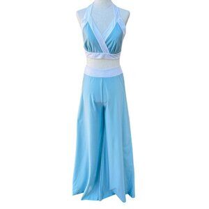 Tennis Star Vintage 70s Women's 3 Piece Crop Top Wide Leg Pants Beachwear Set