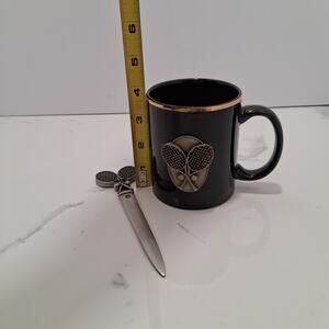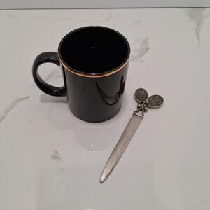 Tennis Themed Racket and Ball Emblem Mug and Letter Opener Office Gift Brass BLK