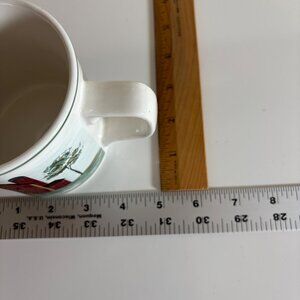 These ceramic mugs feature a charming farmhouse barn design, ideal for both display and functional use.
