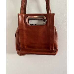 Tentazione Due Brown Leather Tote Handbag Purse Made In Italy