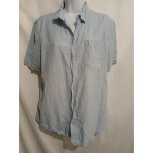 Tenth And Ocean Size L Linen Blend S/S Sky Blue Button Down Shirt Pocket