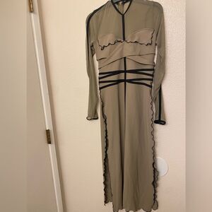 Ribbed spandex, mesh, and spandex tunic dress