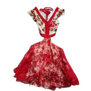 This beautiful floral red kids costume dress is perfect for any special occasion. The vibrant red color and floral design make it a standout piece.