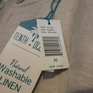 Tenth + Ocean Shorts, Tan Sand, Size 36 Lightweight Linen Cotton blend NEW