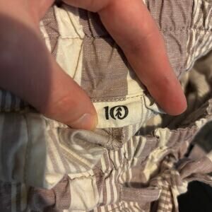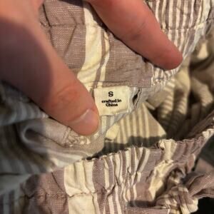 Tentree Cream Pink Striped Paper Bag Shorts Tie Waist Organic Cotton Sustainable