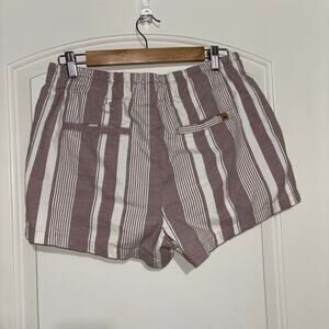 Tentree Cream and Pink/Purple Striped Paper Bag Shorts Tie Waist Organic Cotton Sustainable paperbag shorts