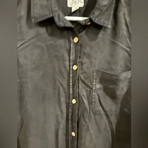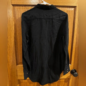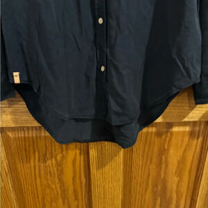 Tentree Fernie 100% Lyocell Button-up Blouse. Size M. High-low hem. Black with brown/tan buttons.