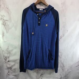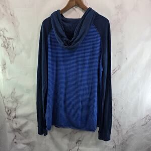 Tentree Shirt Mens XL Navy Blue Henley Hemp Organic Hooded Striped 10 Tree