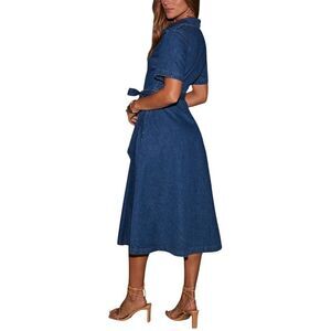 Color/pattern: dark blue Approximately 41.6in from shoulder to hem Measurements taken from a size 6 and may vary slightly by size. 65% Cotton, 35% Polyester Hand wash Imported