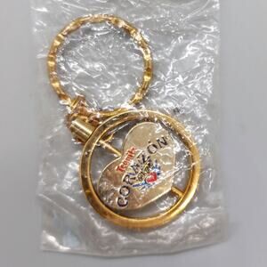 Tequila Corazon de Agave Spinning Heart Keychain Gold Tone Sealed New