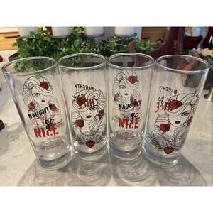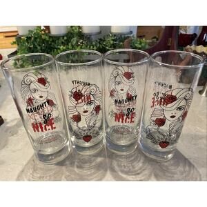 Beautiful glasses depicting a beautiful lady with roses in her hair with a saying “Naughty Never Tasted So Nice “. A delightful addition to any barware collection. With a beautiful rose pattern and clear color is perfect for serving up your favorite cocktails in style. Made of high-quality glass, heavy bottom. New without tags