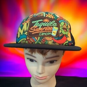 Tequila Sunrise Cancun vibrant colorful snap back 6 panel hat