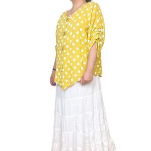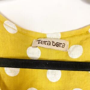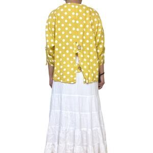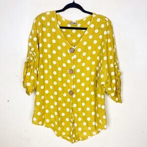 Tera Bora Linen Polka Dot Yellow Blouse Womens 4XL Cottage Twee Mature Vintage