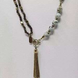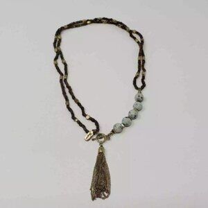Teragram Artisan Handmade Bead Metal Tassel Gold Tone Necklace