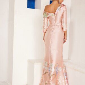 The Terani Couture 241M2714 Evening Dress is a stunning floral patterned gown with 3/4 sleeves, designed in a beautiful Silver Rose color. This long dress is perfect for special occasions and comes in size 16, catering to regular size types. With a focus on quality and style, this authentic dress by Terani Couture offers a sleek design and is guaranteed to be priced competitively, making it a desirable choice for any woman looking for a sophisticated and elegant evening gown.